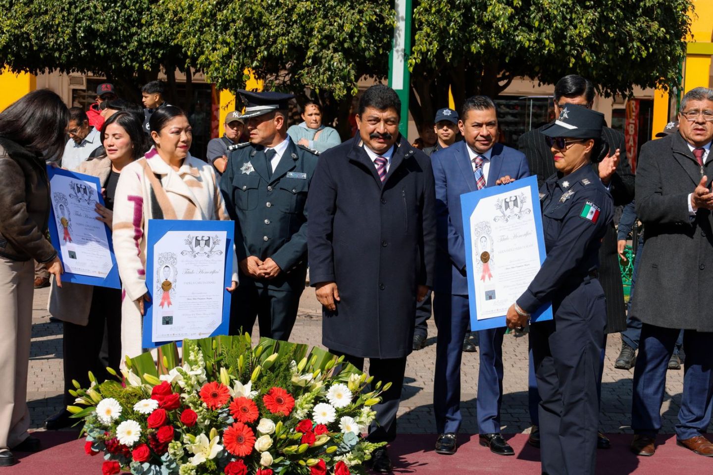 Texcoco, México._En el marco del Día de la Bandera se destacó la importancia de nuestro Lábaro Patrio en la historia de México como símbolo de identidad y unidad del pueblo Méxicano; por ellos en este marco se reiteró el compromiso de reforzar la seguridad en Texcoco con la dotación de equipo a la Dirección de Seguridad Pública y Movilidad.