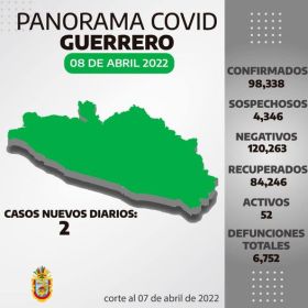 * Sólo 2 nuevos contagios de Covid-19 reporta la Secretaría de Salud en las últimas 24 horas * Se mantiene la baja ocupación de camas Covid, con el 4 por ciento en hospitales