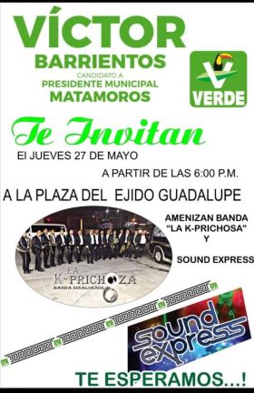 La cita es en la Plaza del Ejido Guadalupe en punto de las 6 de la tarde