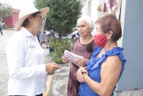 Durante sus visitas casa por casa, la aspirante registra las solicitudes que expresa la ciudadanía, para integrarlas a su proyecto de trabajo por Amatlán, Córdoba y Yanga.