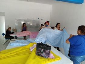 *La elaboración de cubrebocas, en el Centro Comunitario Montaña de Plata, debido a la escases de los mismos, por la contingencia de propagación del COVID-19, que ha puesto en alerta a todo el país.